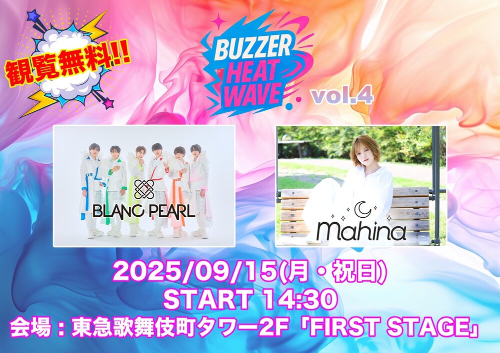 株式会社Buzzerフリーイベント『BUZZER HEAT WAVE vol.4』にmahinaの出演が決定!